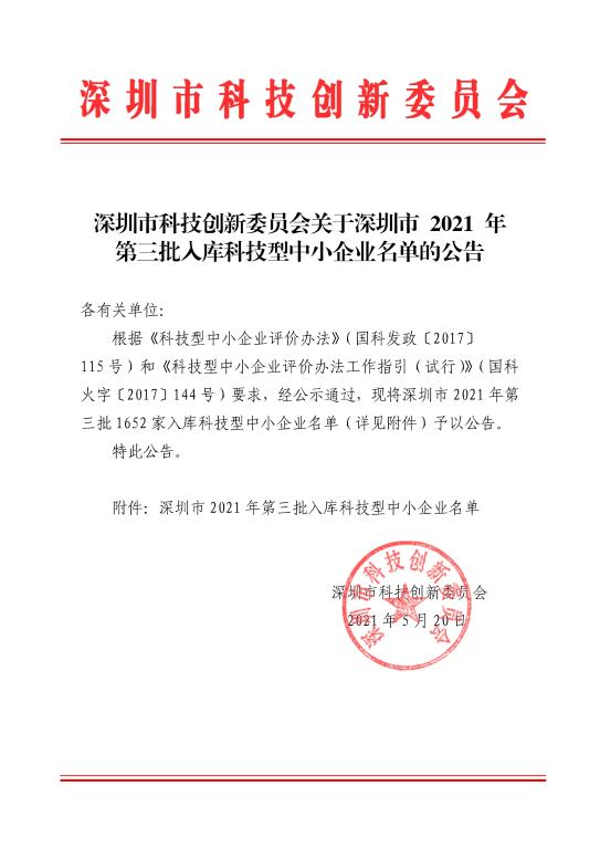 深圳市2021年第3批入庫科技型中小企業(yè)名單公告企業(yè)名單.pdf