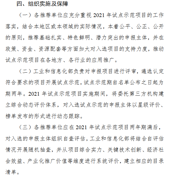 (二)推薦單位。各地工業(yè)和信息化主管部門(大數(shù)據(jù)產(chǎn)業(yè)主管部門)、中央企業(yè)集團等有關(guān)單位負責組織推薦,并于2021年3月14日前登錄申報系統(tǒng)確認推薦名單。